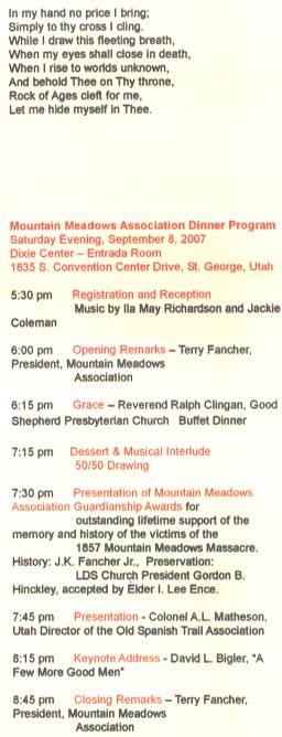 MOUNTAIN MEADOWS ASSOCIATION PROGRAM SESQUICENTENNIAL COMMEMORATION SEPTEMBER 7 TO 11, 2007