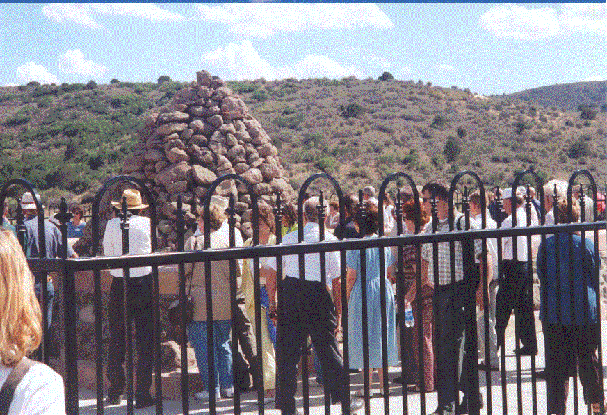 President Hinckley entering the fenced area.